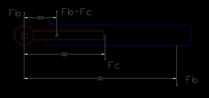 torque is (D1 x Fb) + ((Fb-Fc) x D3). If